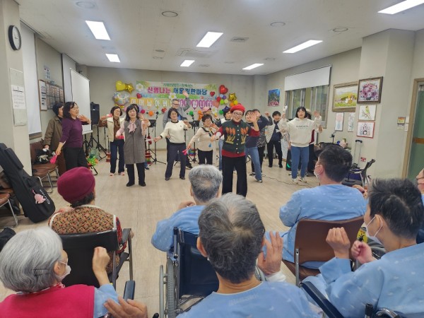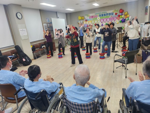 어르신들의 마음에 따뜻하게 전해지고 그 소리에 맞추어 혼자서 노래를 부르시는 어르신들의 노랫소리가