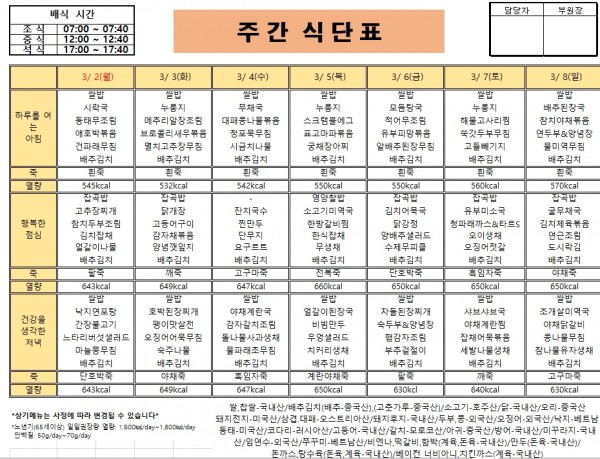 26년 3월 1주 거제요양병원 식단입니다 *.클릭하시면 확대 가능합니다 등록된 댓글이 없습니다.