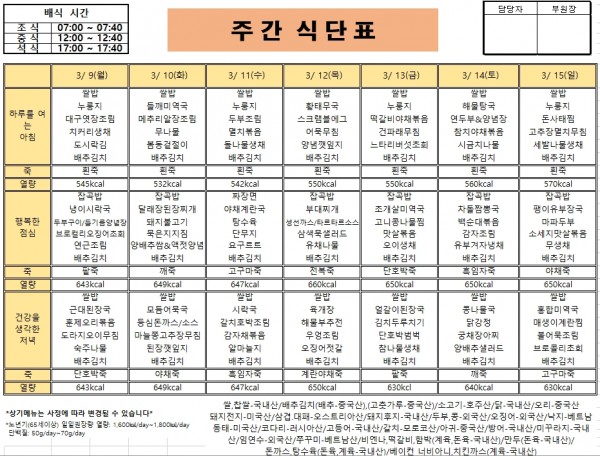 26년 3월 2주 거제요양병원 식단입니다