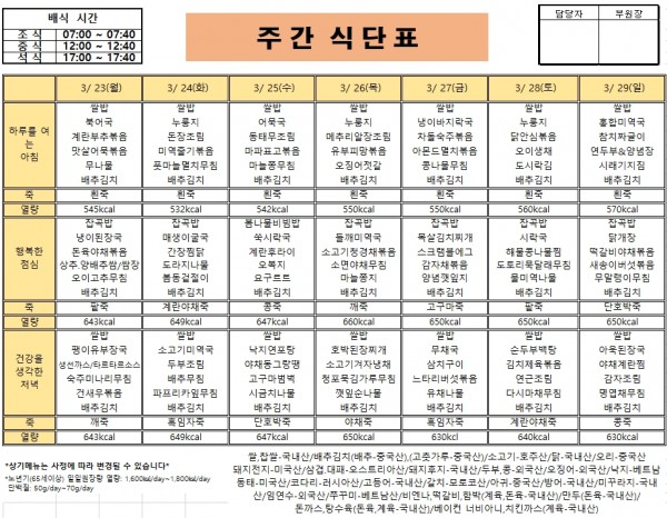 26년 3월 4주 거제요양병원 식단입니다