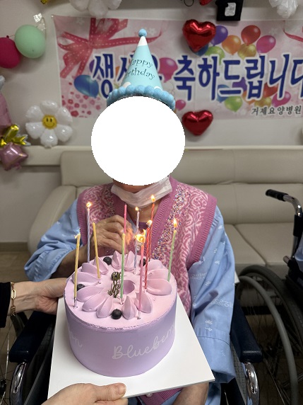 고깔모자를 쓰시고 케이크 촛불도 불어보시고 사진도 찍어드렸습니다.