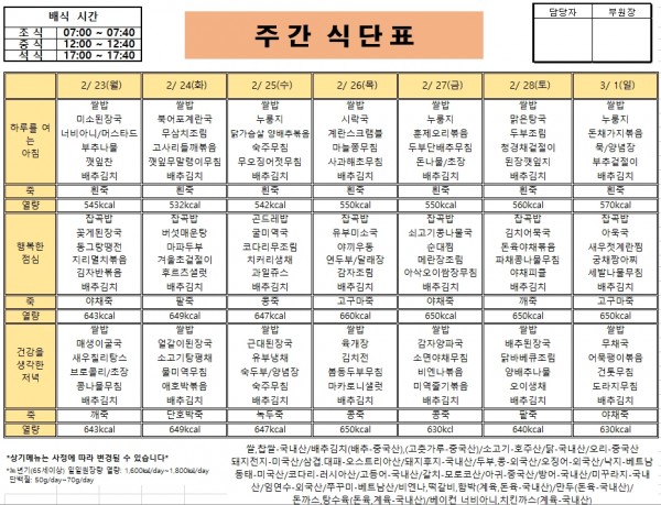 26년 2월 4주 거제요양병원 식단입니다 *.클릭하시면 확대 가능합니다 등록된 댓글이 없습니다.
