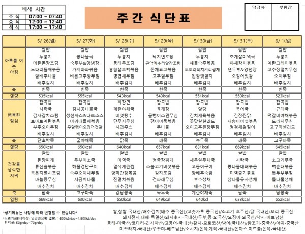 25년 5월 4주 거제요양병원 식단입니다.