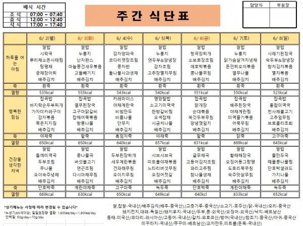 25년 6월 1주 거제요양병원 식단