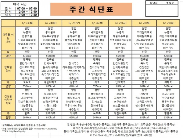 25년 6월 4주 거제요양병원 식단입니다. *클릭하시면 확대 가능합니다. 등록된 댓글이 없습니다.