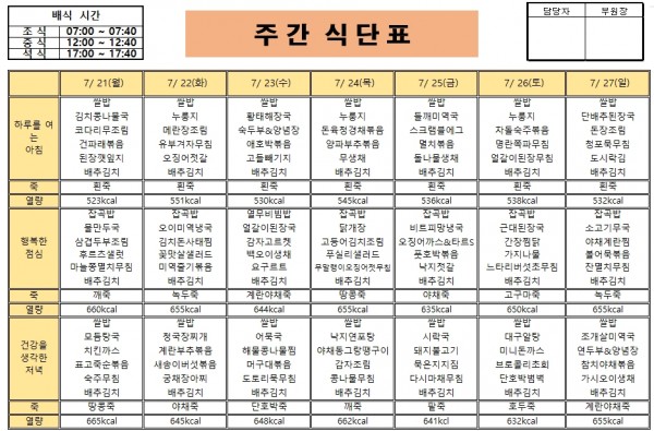 25년 7월 4주 거제요양병원 식단입니다. *클릭하시면 확대 가능합니다. 등록된 댓글이 없습니다.