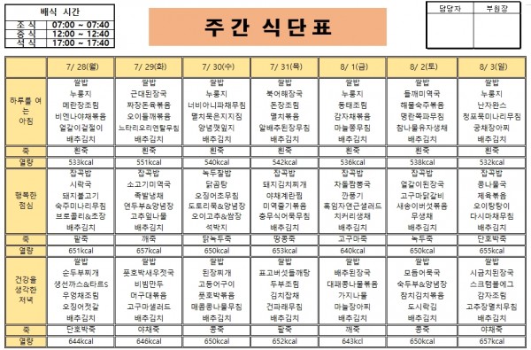 25년 7월 5주 거제요양병원 식단입니다. *클릭하시면 확대 가능합니다. 등록된 댓글이 없습니다.