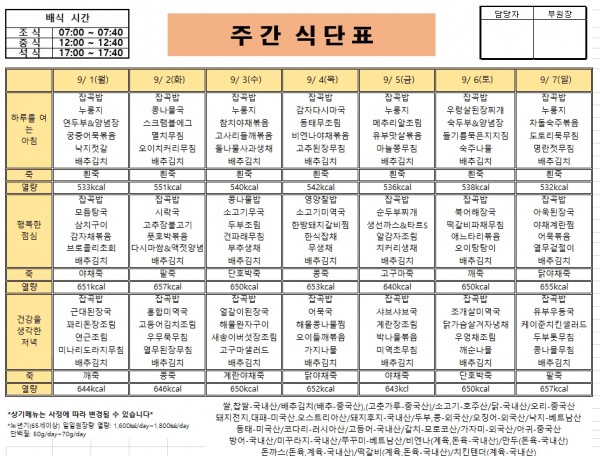 25년 9월 1주 거제요양병원 식단입니다. *클릭하시면 확대 가능합니다. 등록된 댓글이 없습니다.