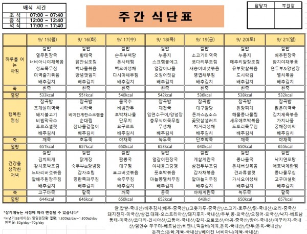 25년 9월 3주 거제요양병원 식단입니다. *클릭하시면 확대 가능합니다. 등록된 댓글이 없습니다.