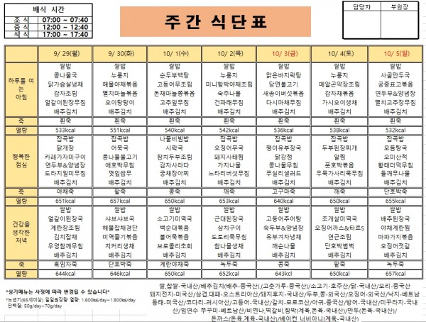 25년 10월 1주 거제요양병원 식단입니다. *클릭하시면 확대 가능합니다 등록된 댓글이 없습니다.
