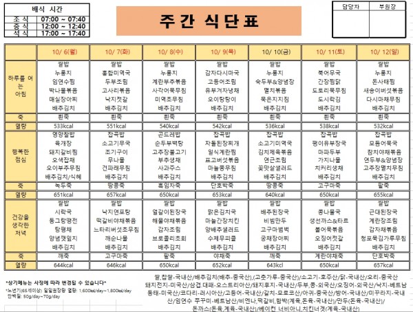25년 10월 2주 거제요양병원 식단입니다. *클릭하시면 확대 가능합니다 등록된 댓글이 없습니다.