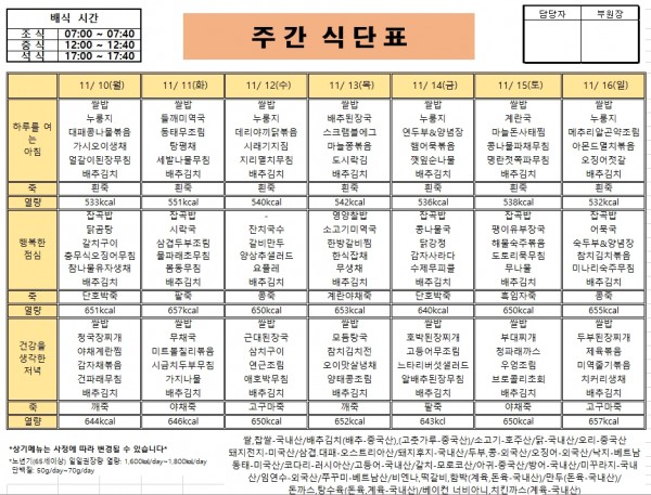 25년 11월 2주 거제요양병원 식단입니다. *클릭하시면 확대 가능합니다 등록된 댓글이 없습니다.