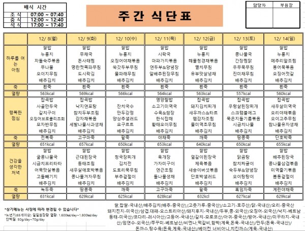 25년 12월 2주 거제요양병원 식단입니다. *클릭하시면 확대 가능합니다 등록된 댓글이 없습니다.