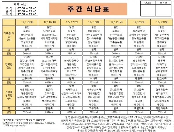 25년 12월 3주 거제요양병원 식단입니다. *클릭하시면 확대 가능합니다 등록된 댓글이 없습니다.