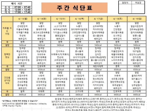 26년 4월 3주 거제요양병원 식단입니다
